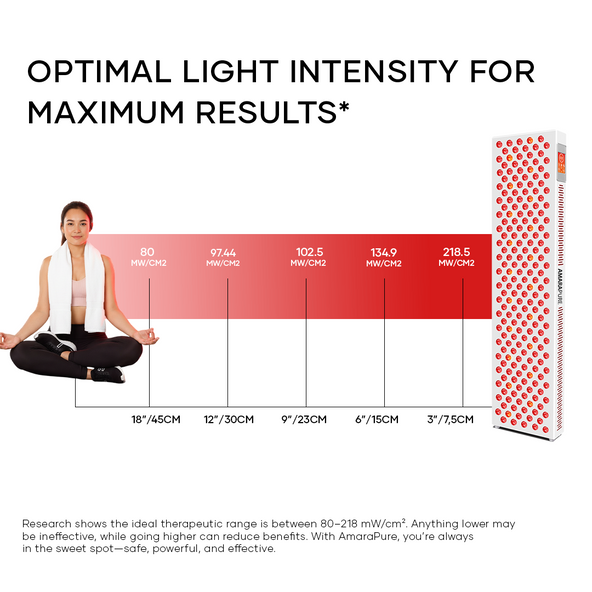 AmaraPure bruger den perfekte blanding af rødt og nær-infrarødt lys (630–850nm). Disse bølgelængder er blevet grundigt undersøgt og er kendt for deres effekt på hudforyngelse, muskelgendannelse og energiforøgelse. Du får altså ikke en standardlampe, men et medicinsk dokumenteret wellness-apparat.