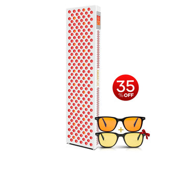 Oplev den ultimative wellness-løsning til hjemmet med Fuldkrops-rødlys-paneler kombineret med Blå lysbriller til hud, hår og generelt velvære.