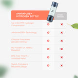 AmaraPure™ enriches your water with up to nine times more therapeutic hydrogen through the hydrogen water bottle, turning regular hydration into a powerful ally against oxidative stress and free radical damage. Just one to three bottles a day can give your body a boost, leaving you energized, ultra-hydrated, and ready for anything.