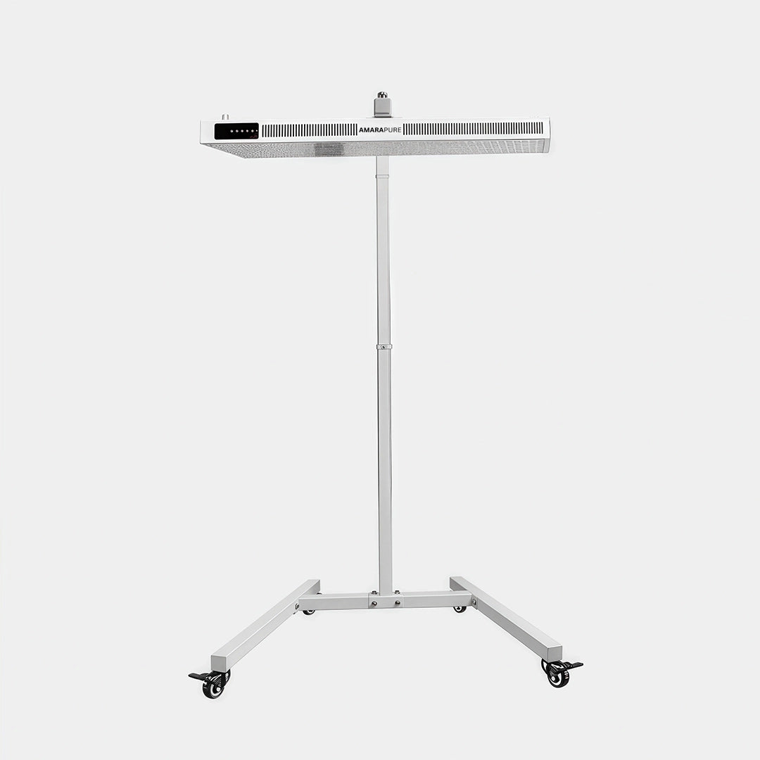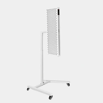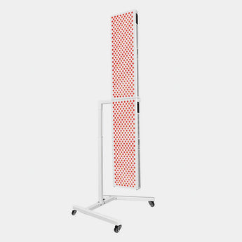 Le panneau de luminothérapie rouge, placé sur ce **support réglable**, prend en charge :