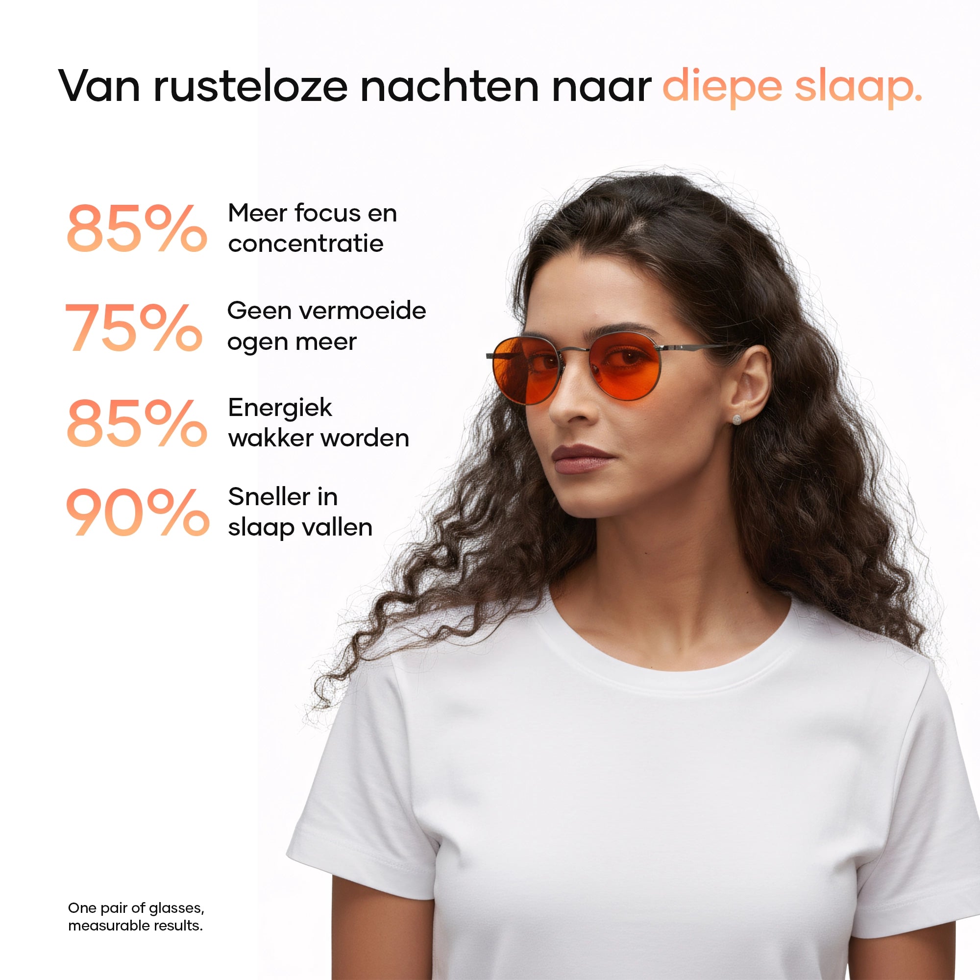 Onze blauwlichtbrillen bieden wetenschappelijk onderbouwde bescherming voor je ogen en slaap. Ideaal voor iedereen die veel tijd doorbrengt achter schermen, overdag én ‘s avonds.